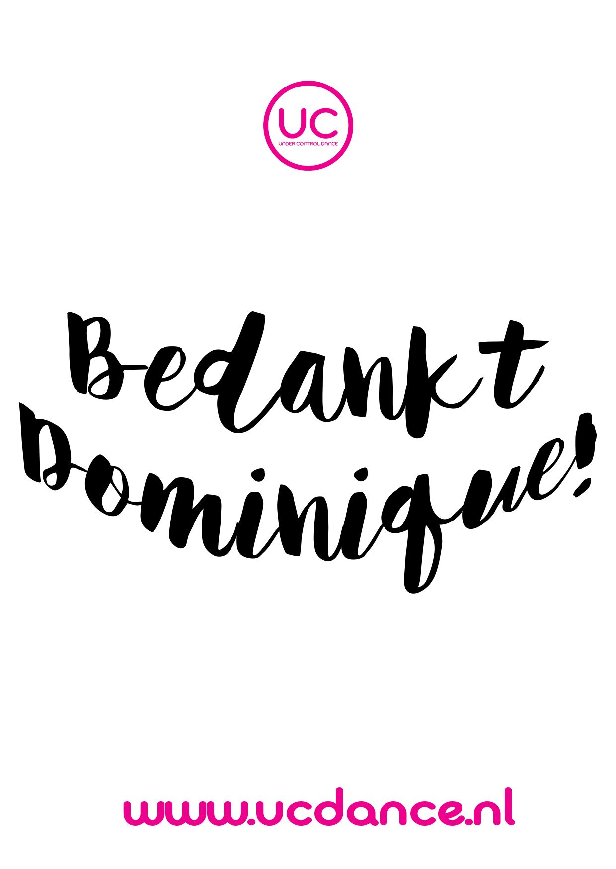 Dominique heeft 8 jaar lang lessen verzorgd bij UC Dance en wij vinden het dan ook ontzettend jammer dat zij besloten heeft ons te verlaten. Wij wensen haar ontzettend veel succes in de toekomst bij haar andere werkgever en haar gezinnetje en willen haar dan ook bedanken voor alles!