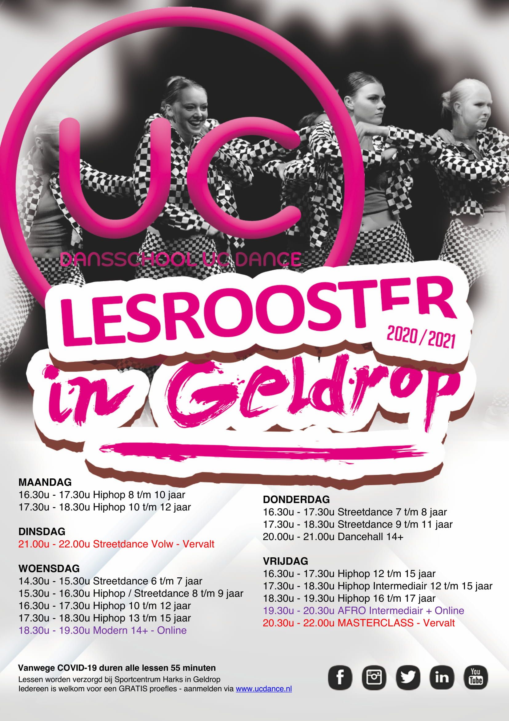 Naar aanleiding van de aangescherpte maatregelen rondom het Covid-19 virus hebben we in ieder geval voor de komende twee weken een aangepast lesrooster op onze danslocatie in Geldrop. Dit lesrooster zal gelden van 4 t/m 18 november 2020.
