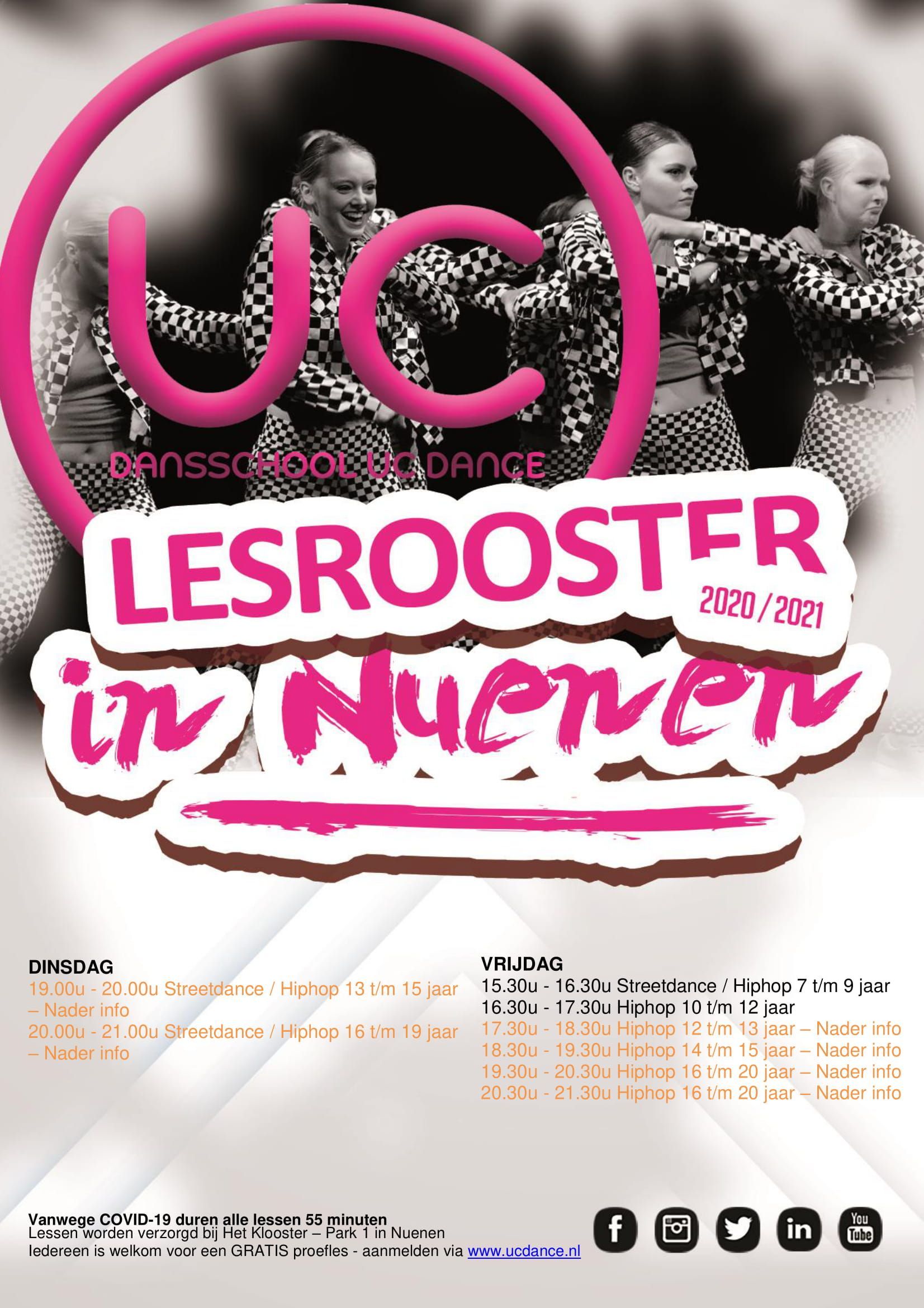 Naar aanleiding van de aangescherpte maatregelen rondom het Covid-19 virus hebben we in ieder geval voor de komende twee weken een aangepast lesrooster op onze danslocatie in Nuenen. Dit lesrooster zal gelden van 4 t/m 18 november 2020.